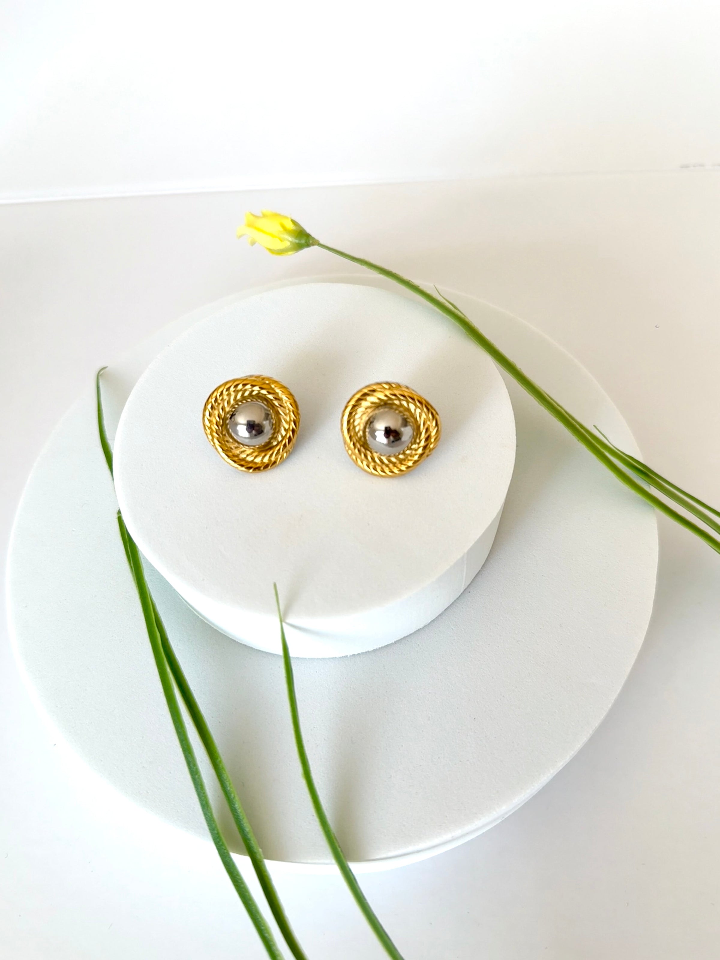 Embrace playful whimsy with a vintage twist. Our SEBLE gold & Silver earrings features an intricate, woven design inspired by, well, the timeless, yet playful shape of challah bread! Crafted from 18k gold plated stainless steel. tehye add a touch of lighthearted elegance to any style.