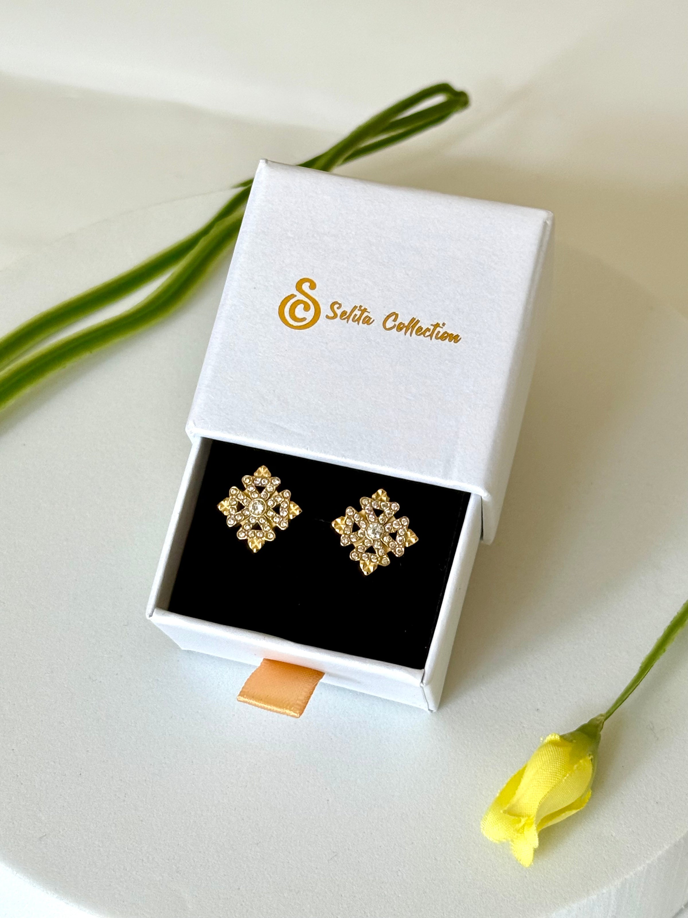 Add a touch of elegance and sparkle with our NEW Mini ENKU | እንቁ Meskel Cross Earrings. These glamorous earrings will elevate any outfit and make a statement. Perfect for adding some glam to your everyday look or dressing up for a special occasion. With their eye-catching design, you'll be sure to turn heads wherever you go.